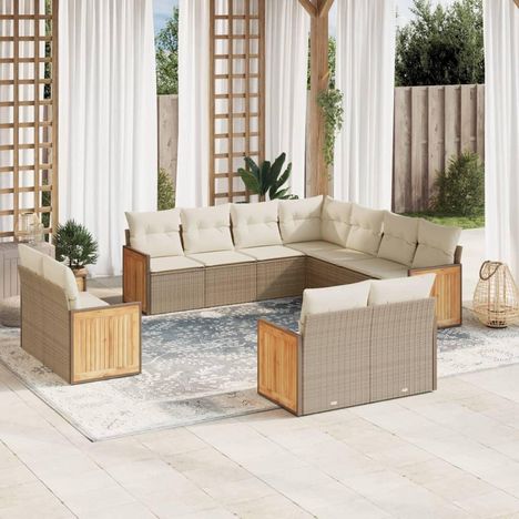 Salon de jardin 11 pcs avec coussins beige resine tressee