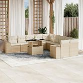 Salon de jardin 11 pcs avec coussins beige resine tressee