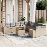 Salon de jardin 11 pcs avec coussins beige resine tressee