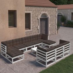 Salon de jardin 11 pcs avec coussins Blanc Bois de pin massif