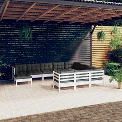 Salon de jardin 11 pcs avec coussins blanc bois de pin