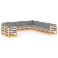 Salon de jardin 11 pcs avec coussins Bois de pin massif