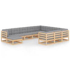 Salon de jardin 11 pcs avec coussins Bois de pin massif