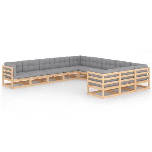 Salon de jardin 11 pcs avec coussins Bois de pin massif