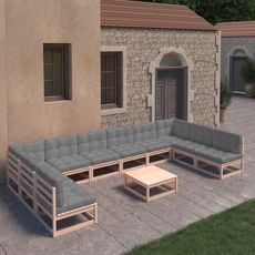 Salon de jardin 11 pcs avec coussins Bois de pin massif