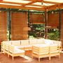 Salon de jardin 11 pcs avec coussins creme Bois de pin solide