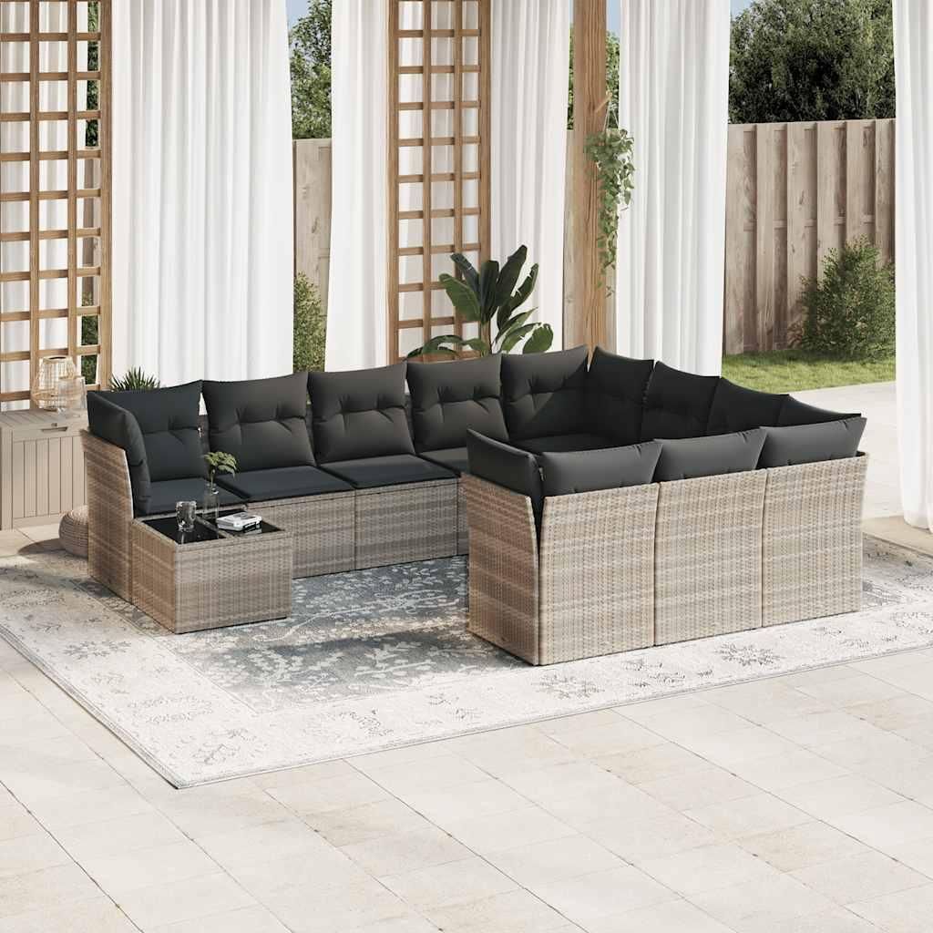 Salon de jardin 11 pcs avec coussins gris clair resine tressee