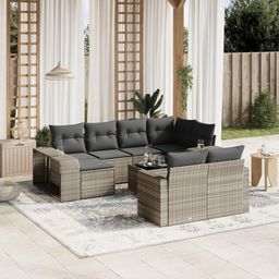 Salon de jardin 11 pcs avec coussins gris clair resine tressee