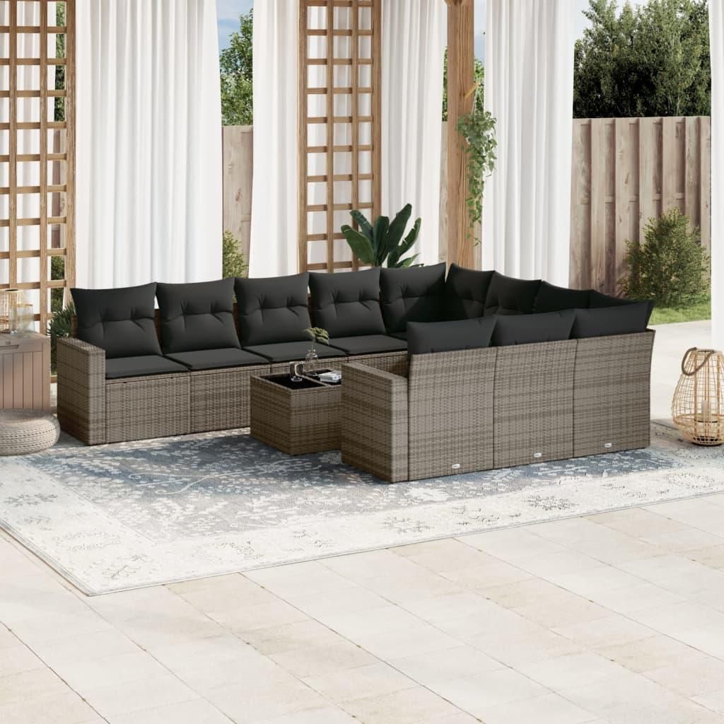 Salon de jardin 11 pcs avec coussins gris resine tressee