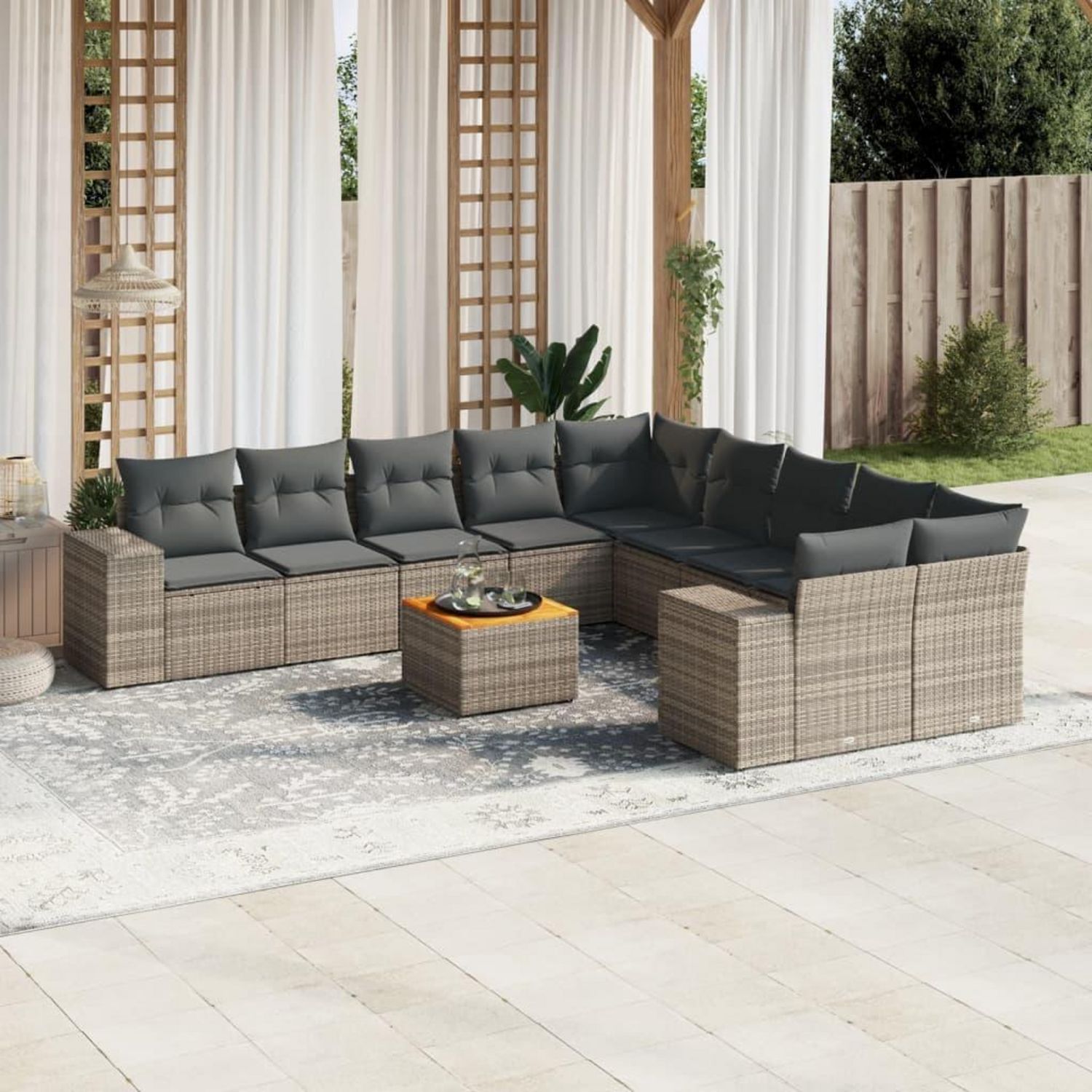Salon de jardin 11 pcs avec coussins gris resine tressee