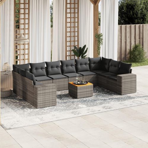 Salon de jardin 11 pcs avec coussins gris resine tressee