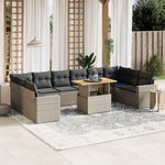 Salon de jardin 11 pcs avec coussins gris resine tressee