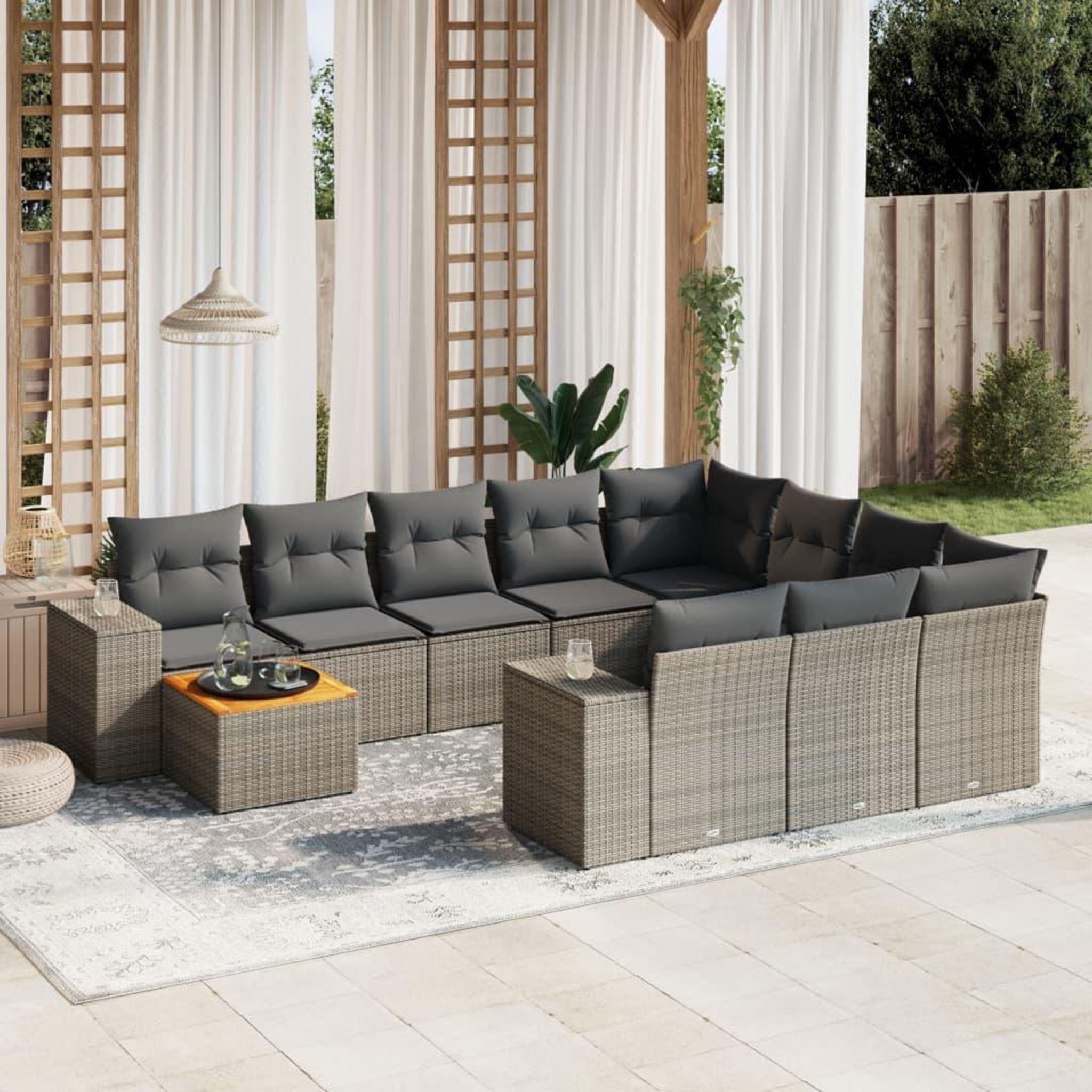 Salon de jardin 11 pcs avec coussins gris resine tressee