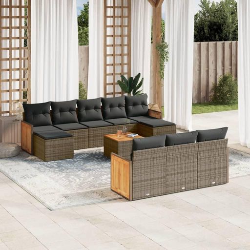 Salon de jardin 11 pcs avec coussins gris resine tressee