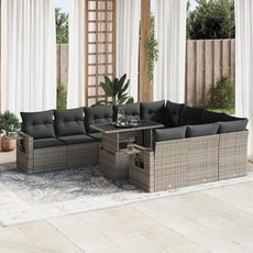 Salon de jardin 11 pcs avec coussins gris resine tressee
