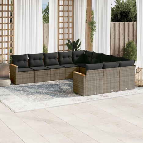 Salon de jardin 11 pcs avec coussins gris resine tressee