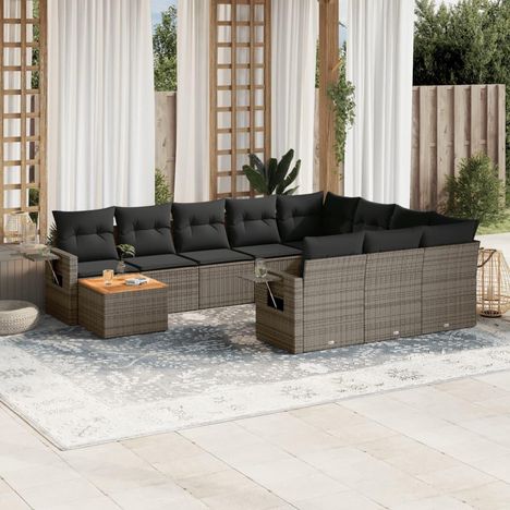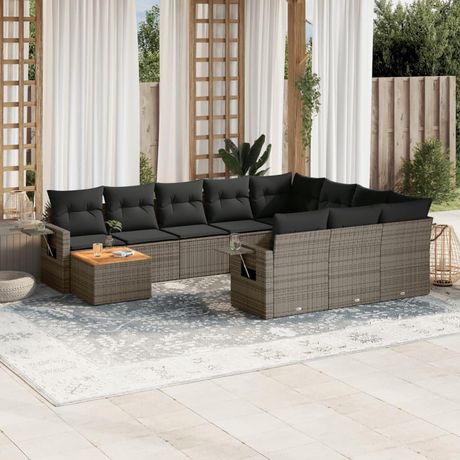 Salon de jardin 11 pcs avec coussins gris resine tressee