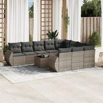 Salon de jardin 11 pcs avec coussins gris resine tressee