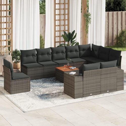Salon de jardin 11 pcs avec coussins gris resine tressee