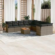Salon de jardin 11 pcs avec coussins gris resine tressee
