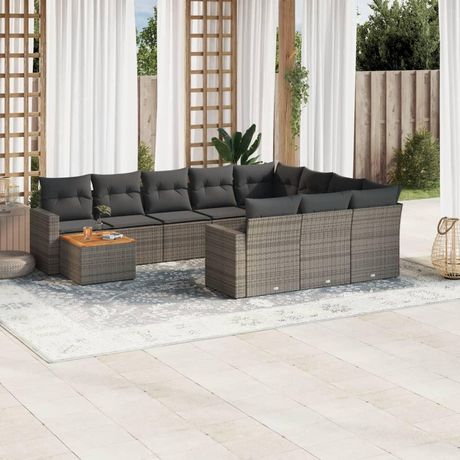 Salon de jardin 11 pcs avec coussins gris resine tressee