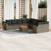 Salon de jardin 11 pcs avec coussins gris resine tressee