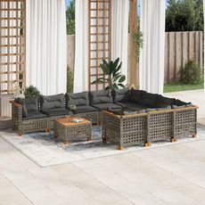 Salon de jardin 11 pcs avec coussins gris resine tressee