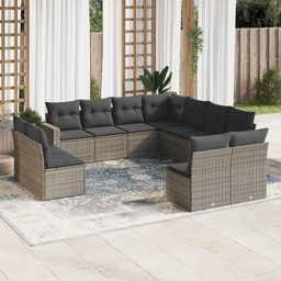 Salon de jardin 11 pcs avec coussins gris resine tressee