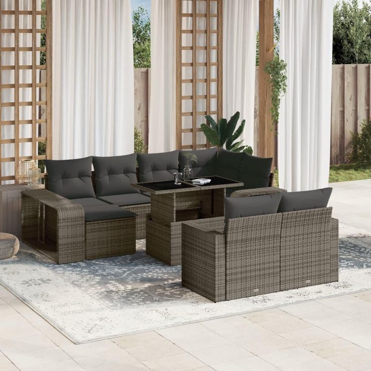 Salon de jardin 11 pcs avec coussins gris resine tressee