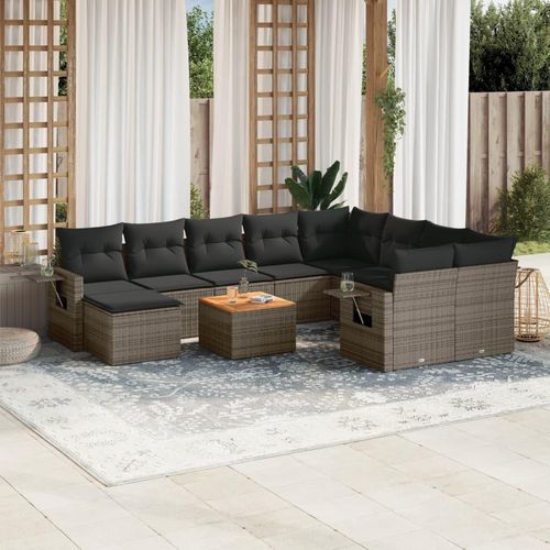 Salon de jardin 11 pcs avec coussins gris resine tressee