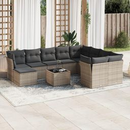 Salon de jardin 11 pcs avec coussins gris resine tressee