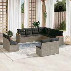 Salon de jardin 11 pcs avec coussins gris resine tressee