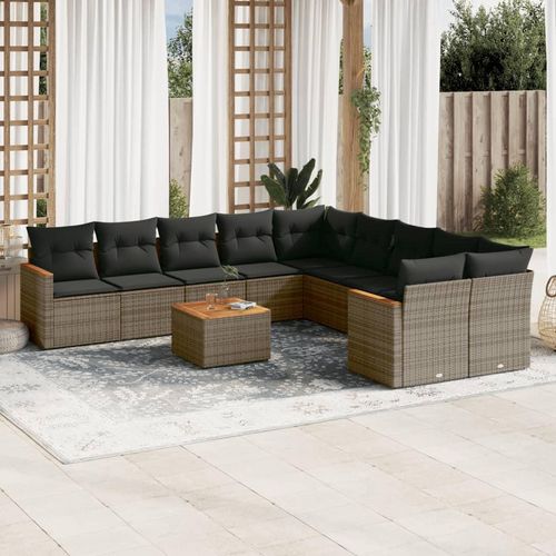 Salon de jardin 11 pcs avec coussins gris resine tressee
