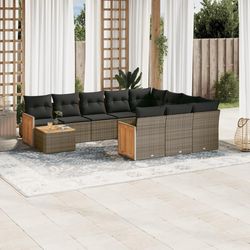 Salon de jardin 11 pcs avec coussins gris resine tressee