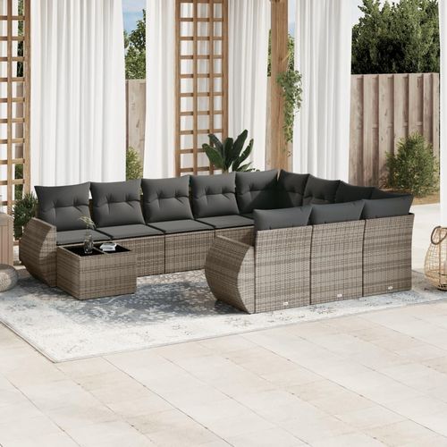 Salon de jardin 11 pcs avec coussins gris resine tressee