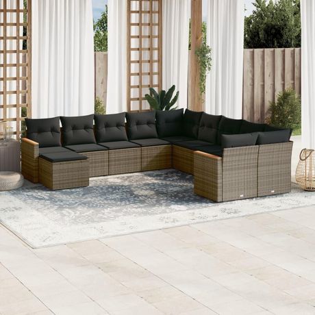 Salon de jardin 11 pcs avec coussins gris resine tressee