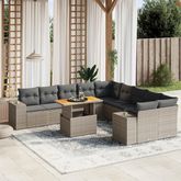 Salon de jardin 11 pcs avec coussins gris resine tressee