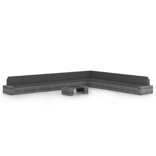 Salon de jardin 11 pcs avec coussins Gris Resine tressee