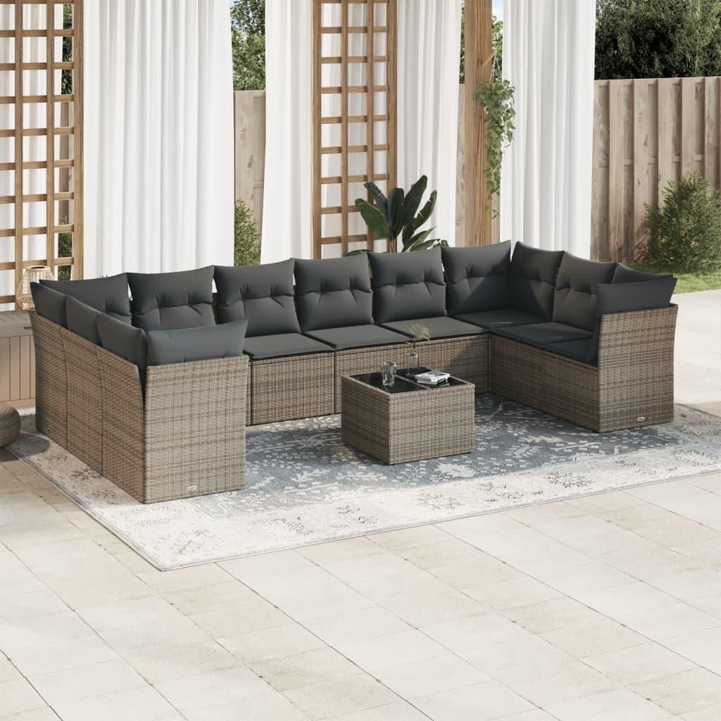 Salon de jardin 11 pcs avec coussins gris resine tressee