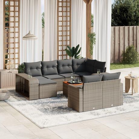 Salon de jardin 11 pcs avec coussins gris resine tressee