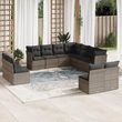 Salon de jardin 11 pcs avec coussins gris resine tressee