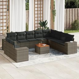 Salon de jardin 11 pcs avec coussins gris resine tressee