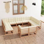 Salon de jardin 11 pcs avec coussins Marron miel Bois de pin