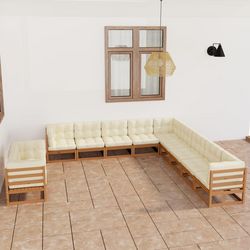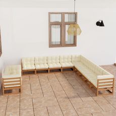 Salon de jardin 11 pcs avec coussins Marron miel Bois de pin