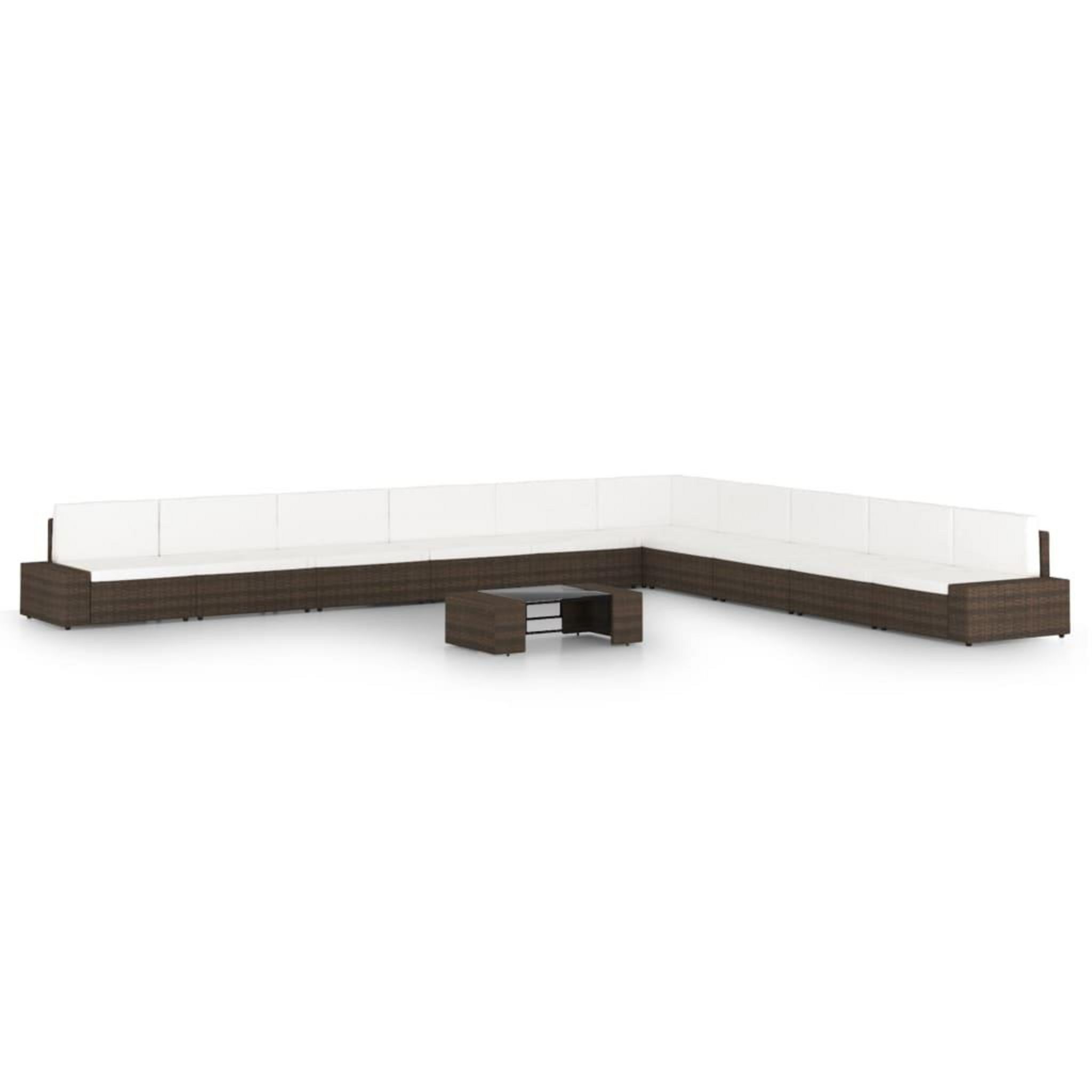 Salon de jardin 11 pcs avec coussins Marron Resine tressee