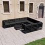 Salon de jardin 11 pcs avec coussins Noir Bois de pin massif