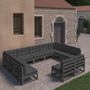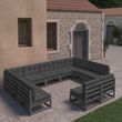 Salon de jardin 11 pcs avec coussins Noir Bois de pin massif
