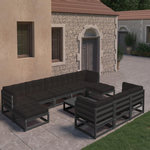Salon de jardin 11 pcs avec coussins Noir Bois de pin massif