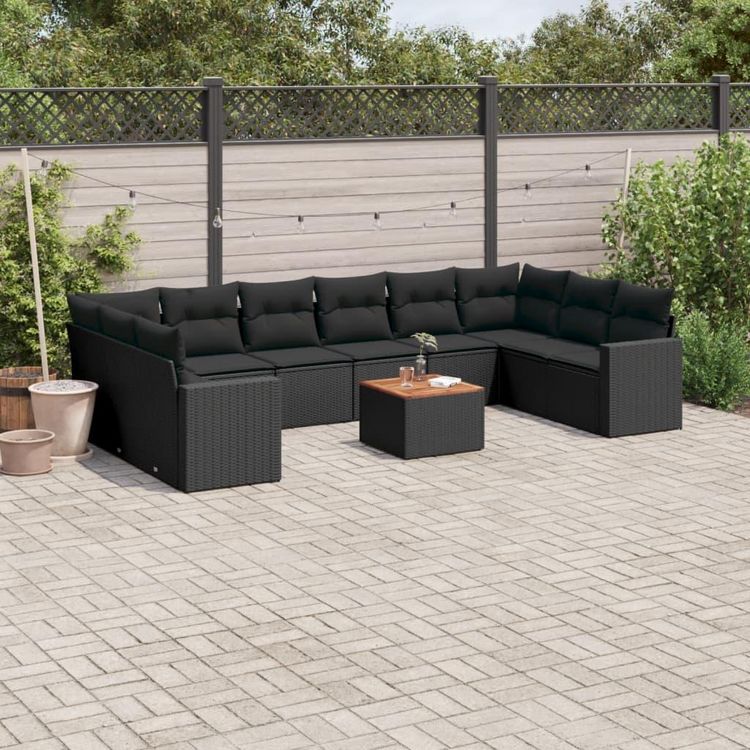 Salon de jardin 11 pcs avec coussins noir resine tressee
