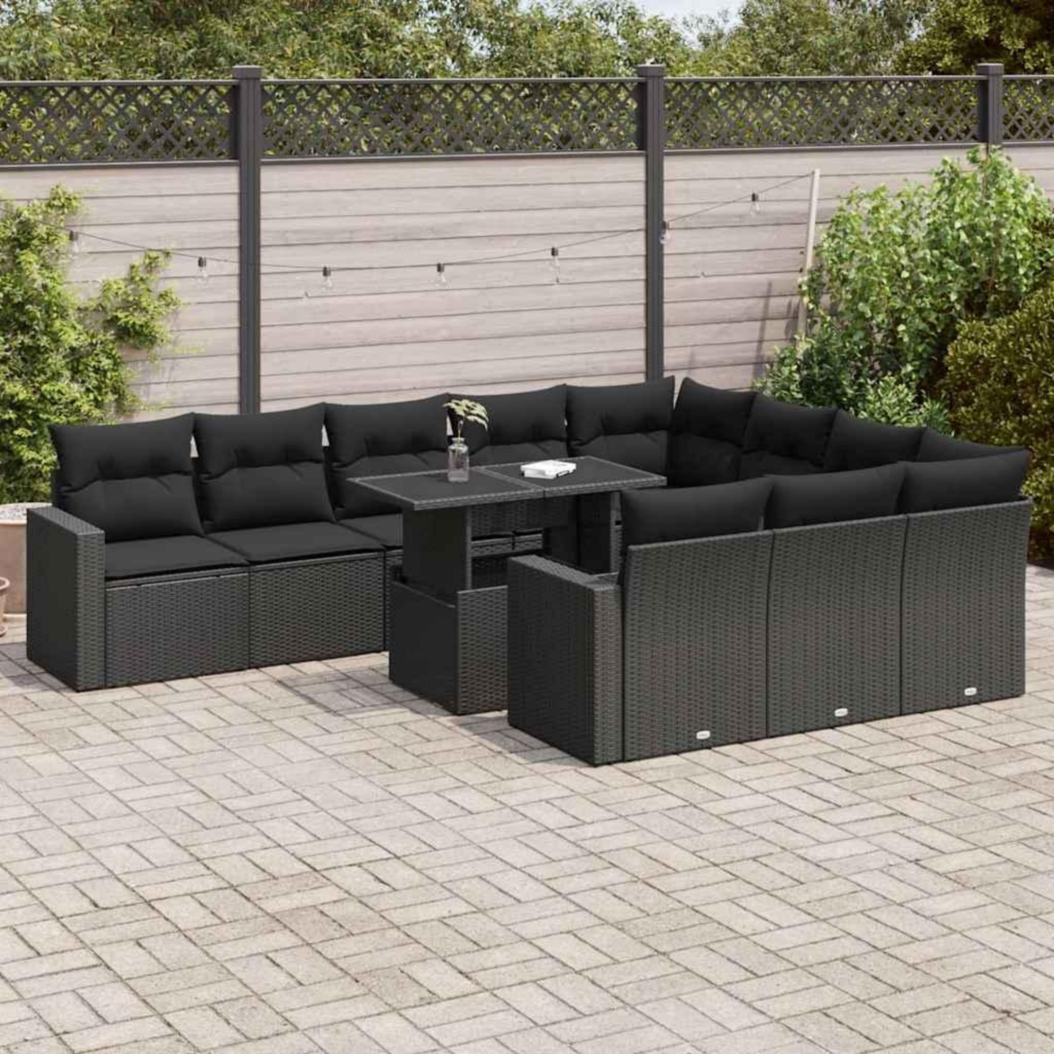 Salon de jardin 11 pcs avec coussins noir resine tressee